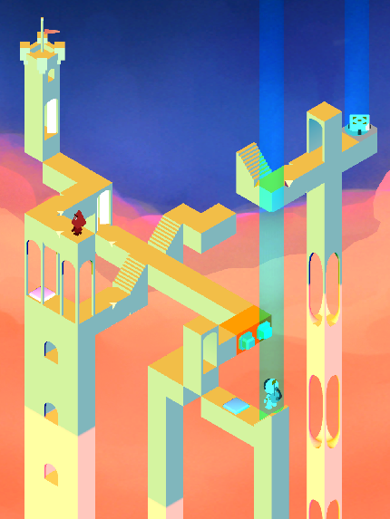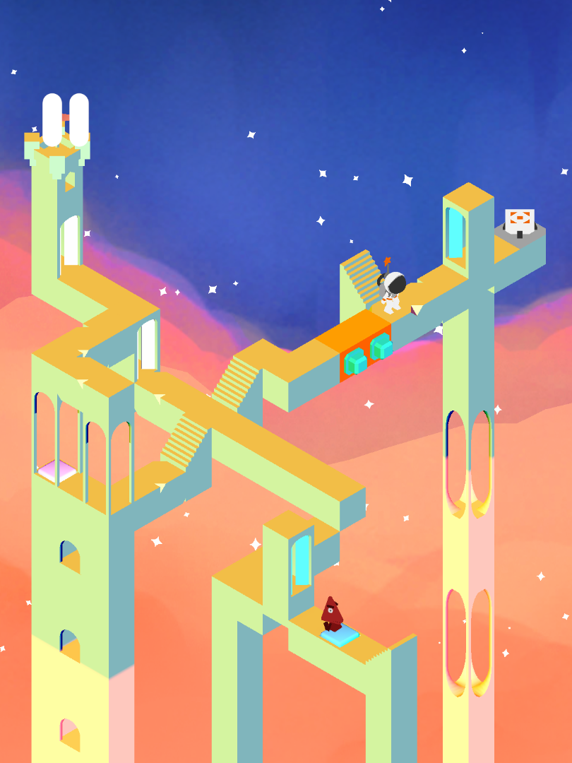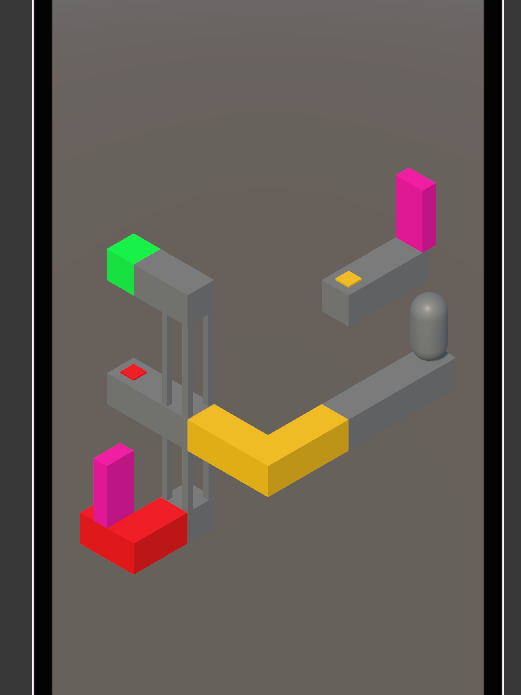 I also didn’t feel like the level was grand enough for my final level, so I decided to iterate further on my idea from level 3 with buttons affecting navigable space. I swapped out the pink portals for archways that would alternate up and down with the help of a button, creating walkable paths not only through them, but over them as well.