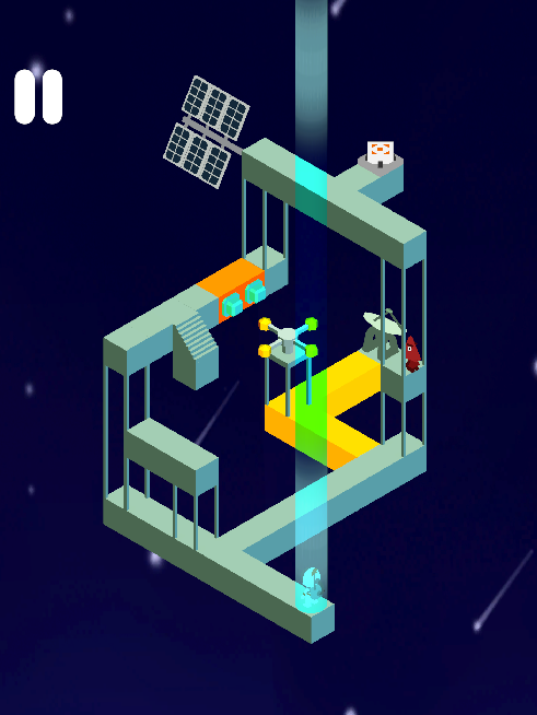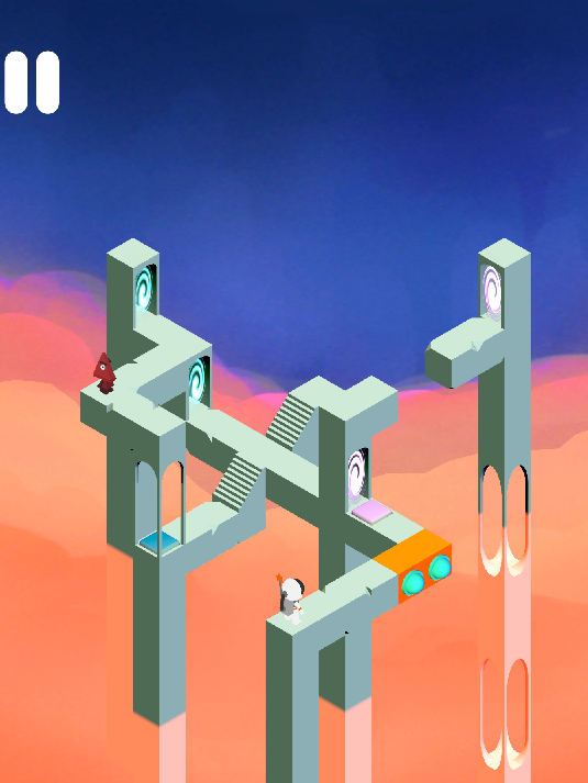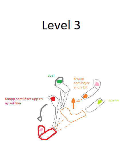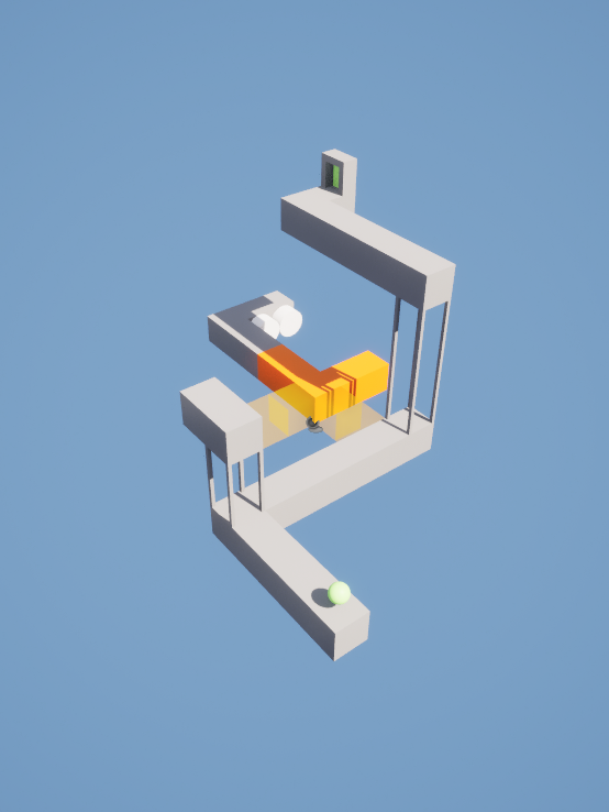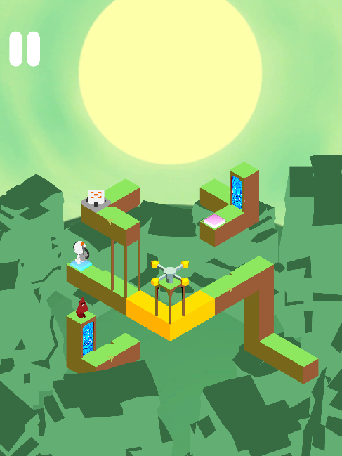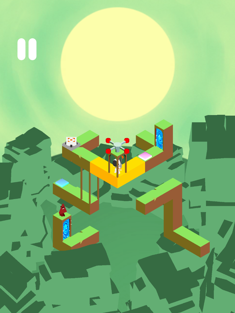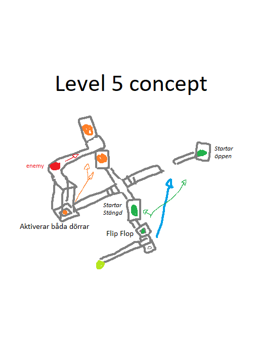 I wanted my final level to be a accumulation of the many elements introduced prior in the game; moving pieces, buttons, portals & enemies. I also really enjoyed the idea of using the roaming enemy as a way of affecting the playspace and helping the player complete the level, instead of exclusively acting as an opposing force.