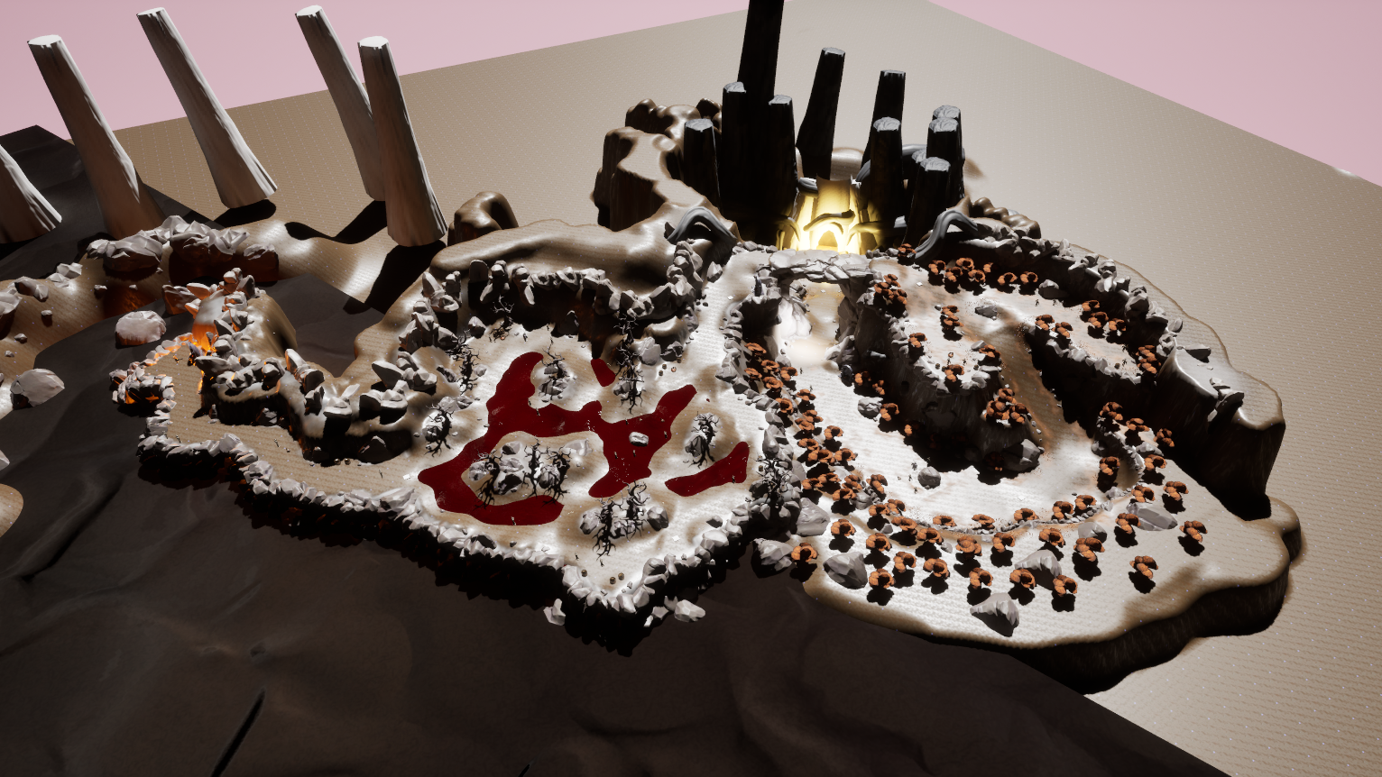 Had I gone back to do this project all over again I would’ve started the blockout process and tested the various pipelines a lot sooner. While I’m happy I spent a lot of time in the idea and top-down stage, I believe that for a game where the combat is of major importance, my level could’ve benefitted from having reached the polish stage earlier so that I could have spent more time fine tuning the various combat spaces.